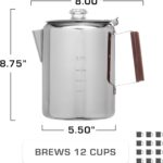 Whether you’re brewing coffee over a campfire, a portable stove, or even at home, the Bozeman delivers bold, full-bodied flavor that drip machines just can’t match. Its classic percolator design makes brewing easy and satisfying, while the included heat-toughened glass top lets you watch the brewing action.